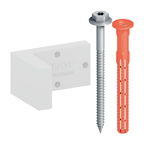 - Az EJOT® Iso-Corner rögzítéséhez betonra, kéregpanelre, tömör- és üreges falazatokra