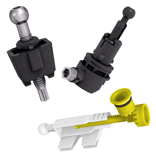 The adjustment systems developed by EJOT are available in different sizes and configurations and can be used in headlamp adjustment systems for cars, trucks and other vehicles. Both manual and motorised adjustments are possible. The application range comprises various lamp systems such as halogen, LED and laser applications. The corresponding counterpart belongs also to the product range and they are accurately fitting to the ball heads.