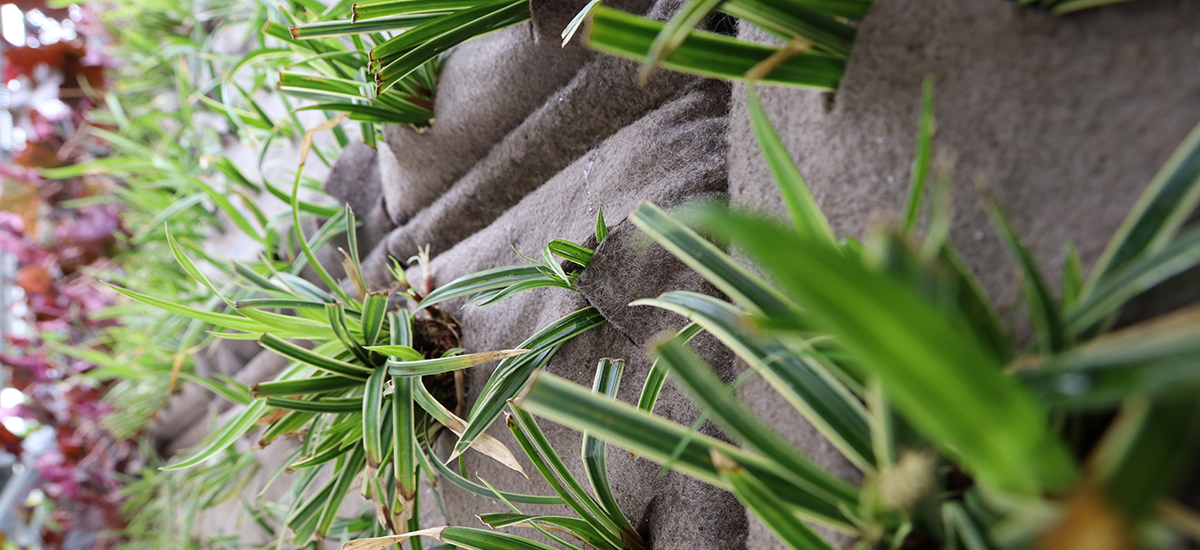 Egy koncepció alakult ki a növények elhelyezésére növénytáskákkal, az úgynevezett "Living Wall" technikával. A növénytáskákat már előre beültetve szállították az építkezésre, majd az előre összeszerelt alapszerkezetre csavarozták fel. A zöld homlokzatba integrált érzékelő- és öntözéstechnika bármikor optimális ellátást biztosít a növények számára – modern módon, egy applikáción keresztül vezérelve. Az alapszerkezet az EJOT CROSSFIX® rendszere, amely előregyártott, légréses homlokzatok (VHF) kialakításánál alkalmazott. A CROSSFIX® rendszer vízszintes teherhordó profiljai fölé a TEC CENTER épületén egy második, függőleges teherhordó profilrendszert szereltek, amely most már a növénytáskákat tartja.